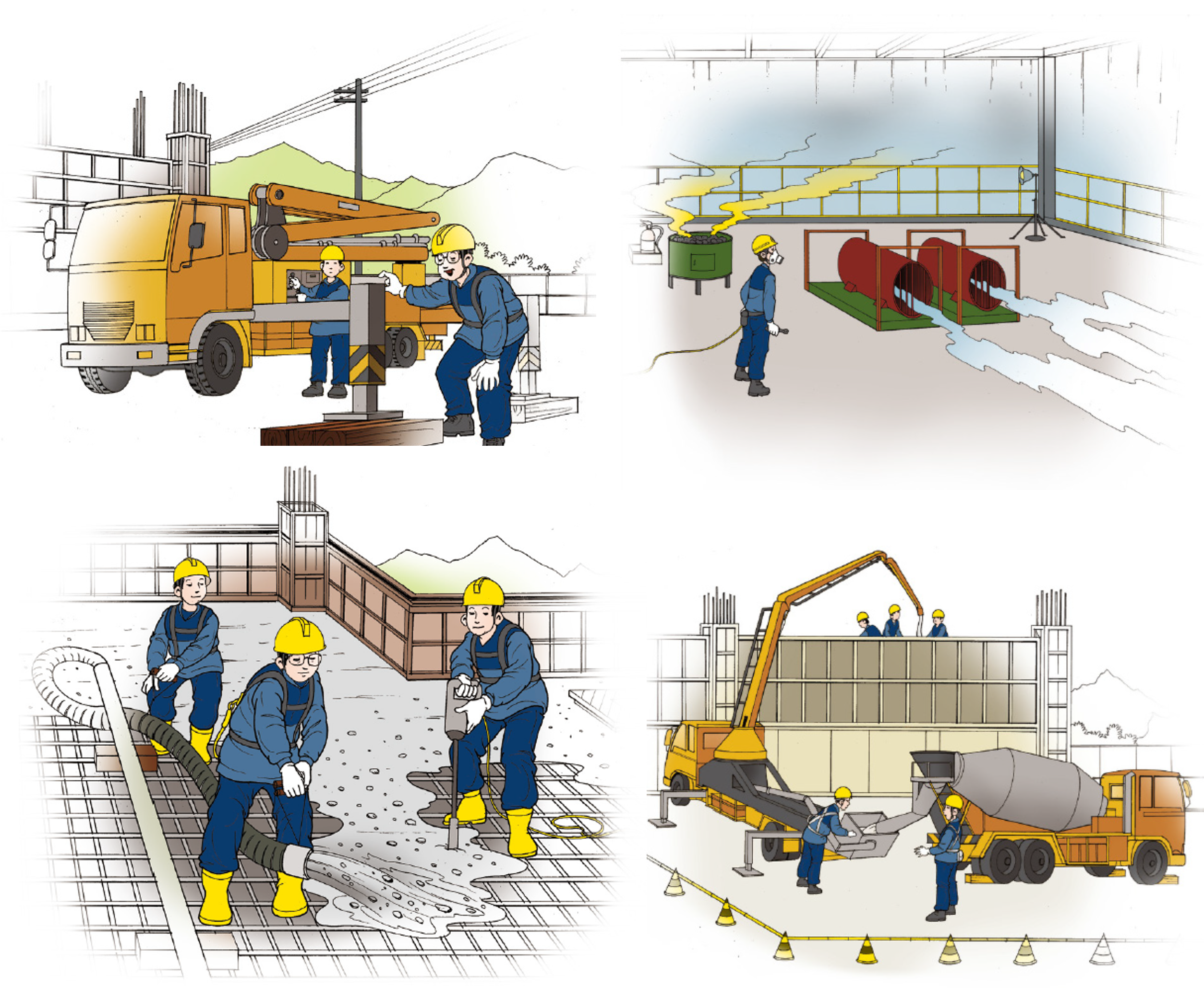 - 콘크리트 양생장소 출입 시 질식이나 중독의 위험 있으므로 공기호흡기 등 적절한 호흡용 보호구 착용 후 출입할 것